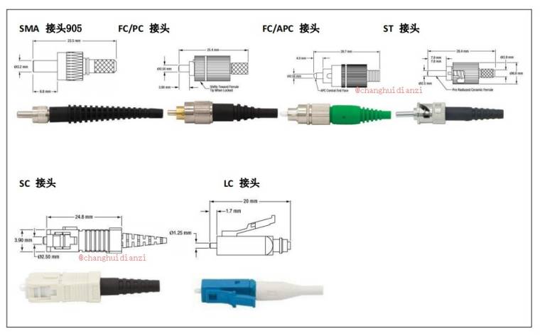 光纖的接頭與光纖末端相連接,使光纖之間可以進行快速、簡單的連接和斷開。光纖接頭可以耦合和對準兩段光纖的纖芯,這樣一來,光波就可以無障礙地從一段光纖傳播到另一段光纖中。常暉提供六種窄插銷接頭(可隨意搭配),用于定制跳線。